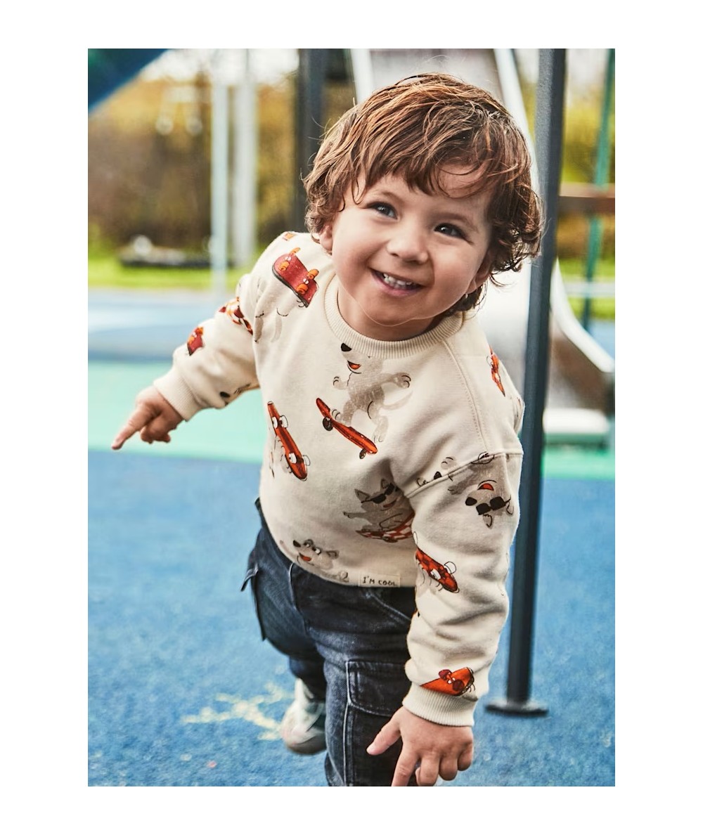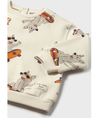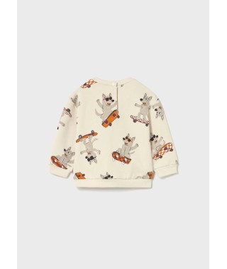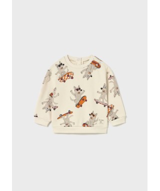 Sweat de manga comprida para bebé. Gola redonda. Botão de pressão na gola para facilitar a colocação da peça. Estampado de animais.