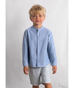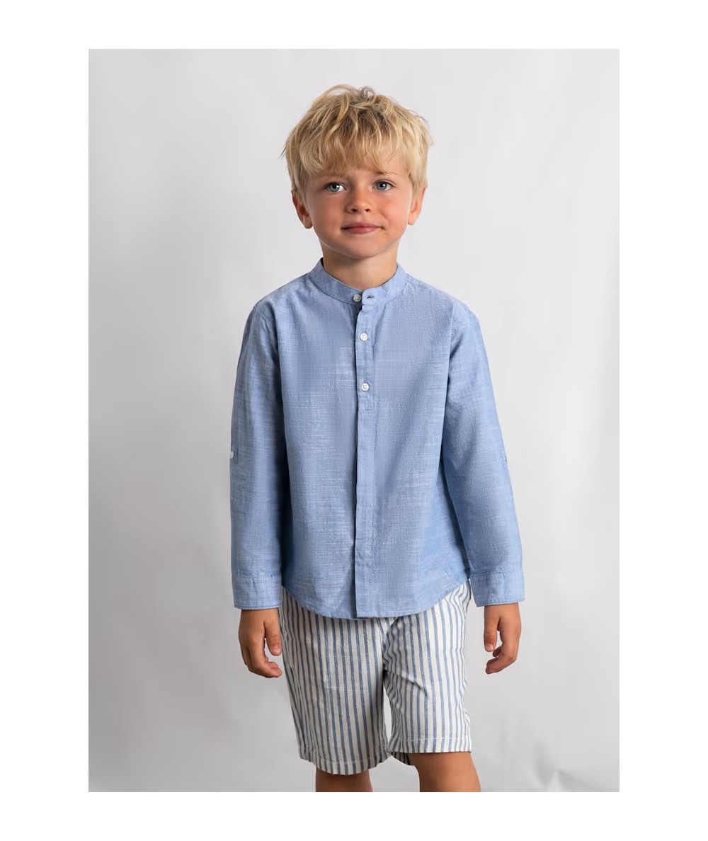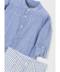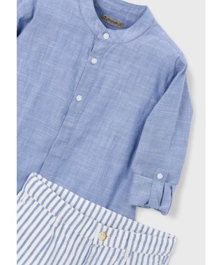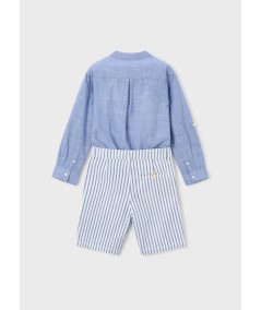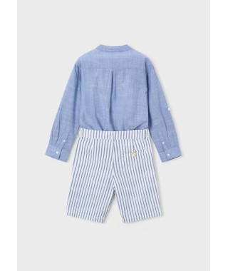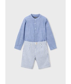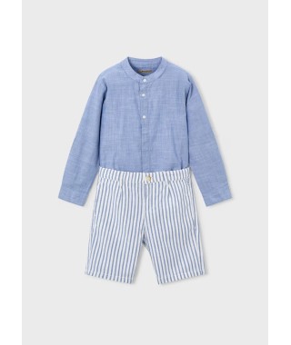 Conjunto de calção e camisa alinhada de manga comprida para menino.