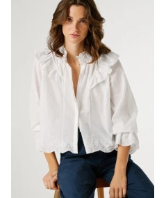 - Folhos nos ombros com detalhes abertos e bordados